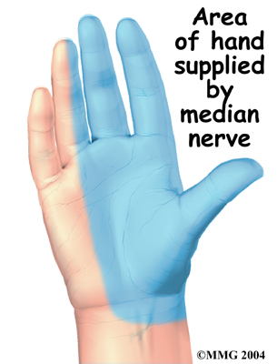 When pressure builds on the median nerve, the blood supply to the outer covering of the nerve slows down and may even be cut off. The medical term for this is ischemia. At first, only the outside covering of the nerve is affected. But if the pressure keeps building up, the inside of the nerve will start to become thickened. New cells (called fibroblasts) form within the nerve and create scar tissue. This is thought to produce the feelings of pain and numbness in the hand. If pressure is taken off right away, the symptoms will go away quickly. Pressure that isn’t eased right away can slow or even stop the chances for recovery.
